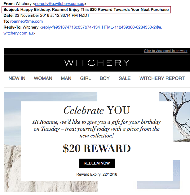وفقًا لدراسة أجرتها Experian Marketing Services ، فإن سطور موضوع البريد الإلكتروني التي تم تخصيصها من خلال تضمين اسم المشترك عززت معدلات الفتح بنسبة 29.3٪ في المتوسط في جميع الصناعات.