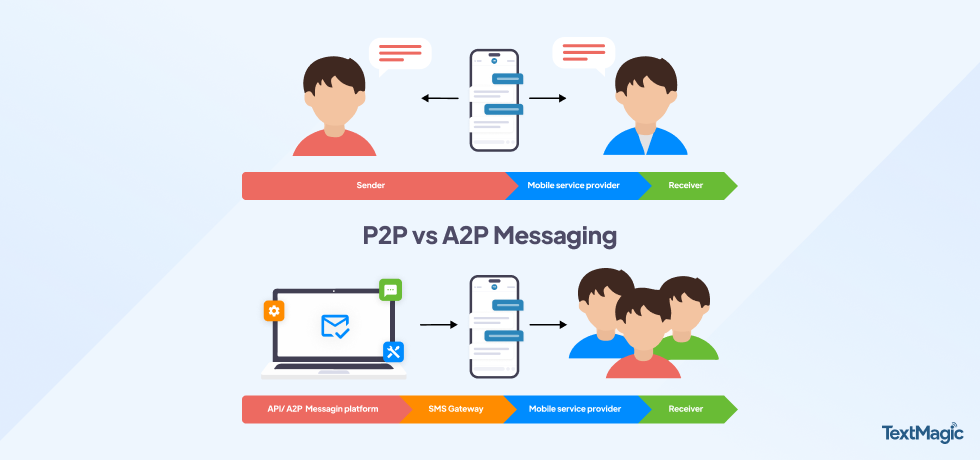 رسائل A2P مقابل P2P: الاختلافات والفوائد وحالات الاستخدام