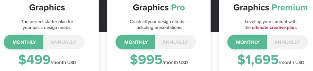 - الثمن. بعض خدمات التصميم الجرافيكي غير المحدودة باهظة الثمن. من الأفضل اختيار شركة تقدم أسعارًا شهرية معقولة.