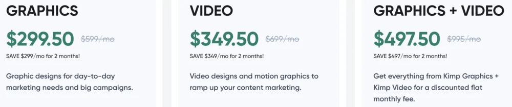 إذا كنت تبحث عن بعض أعمال الفيديو والرسومات المتحركة، فإن Kimp هو أفضل رهان لك. ويمكنهم أيضًا تعيين فريق تصميم Canva لك لتصميمات غير محدودة.