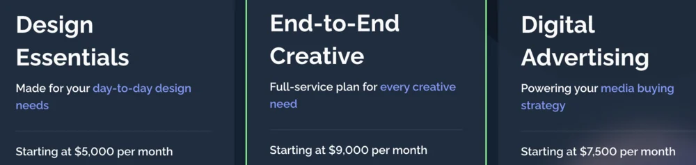 يعد Superside باهظ الثمن بعض الشيء مقارنة بخدمات التصميم الجرافيكي الأخرى حسب الطلب في هذه القائمة. يمكنك زيادة ساعاتك الشهرية إلى الحد الأقصى أو ترحيل الساعات غير المستخدمة إلى الشهر التالي. مدة التنفيذ هي 12، 24، أو 48 ساعة، حسب مدى تعقيد المشروع.