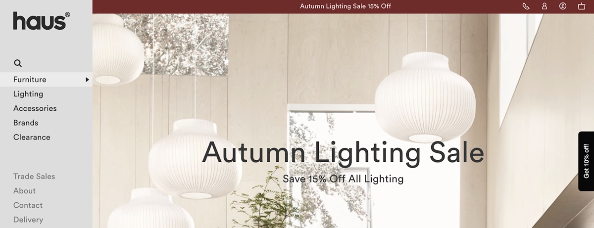 إذا كنت تبيع منتجًا يحتوي على الكثير من الفئات والأنماط المختلفة ، فإن Haus يعد مرجعًا رائعًا لتصميم الويب الخاص بك.