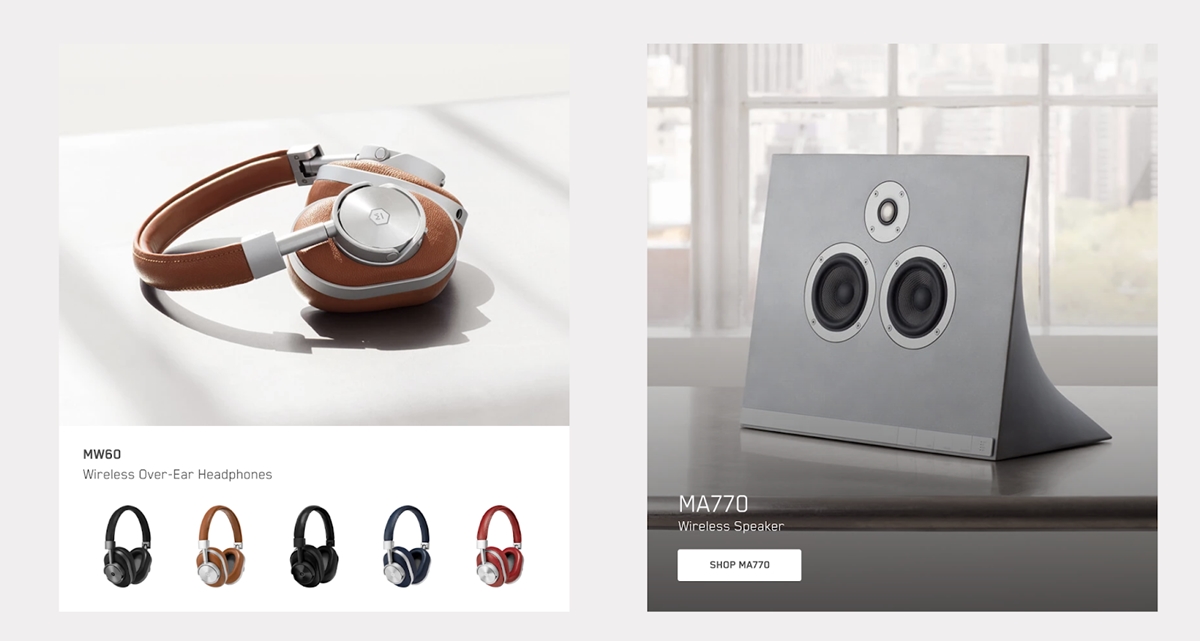 تمتلك هذه الشركة التي تتخذ من مدينة نيويورك مقراً لها مجموعة متنوعة من سماعات الرأس وملحقات الصوت عالية الجودة لتقديمها. بعد أن حققت إيرادات بملايين الدولارات فقط من متجر Shopify وحده ، فإن Master and Dynamic يصنعان اسمًا لنفسه وينطلقان لمنافسة Beats by Dre في صناعة سماعات الرأس. بصرف النظر عن كونها عالية الجودة ، فإن منتجات M&D تباع جيدًا بفضل تصوير المنتج وعرضه.