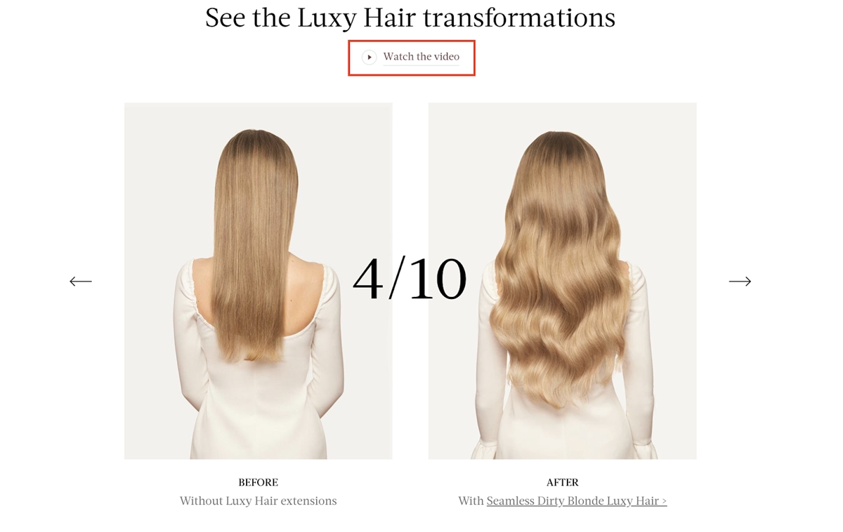 قم بالتمرير لأسفل إلى أسفل الصفحة التي سترى شريط الشرائح هذا. للبيع بشكل أفضل ، قاموا بتضمين صور نمط الحياة الخاصة بوصلات الشعر المستخدمة حتى يتمكن العملاء من رؤية شكل المنتج في الواقع.