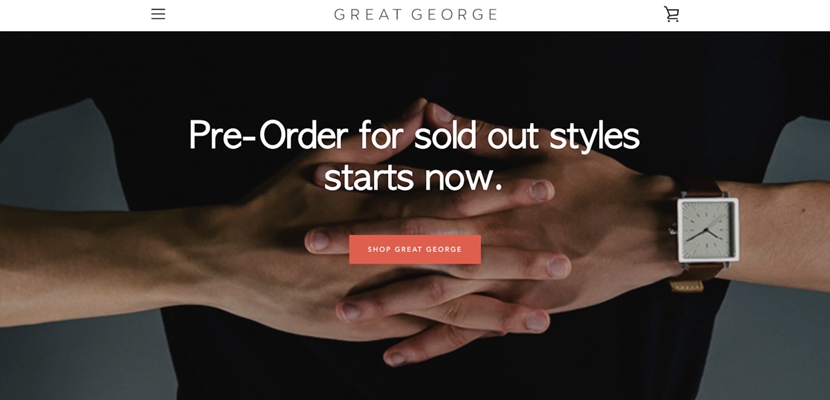تصميم وهيكل هذا المتجر أساسيان للغاية ؛ لا شيء أجده مميزًا. ولكن إذا كنت تبيع ساعات ، فمن المفيد ملاحظة أن صور المنتجات عالية الجودة التي تسلط الضوء على التفاصيل الدقيقة لساعتك ضرورية. لقد التقطت Great George Watches صوراً رائعة لمهارتهم ووضعتهم في مقدمة موقعهم على الإنترنت.