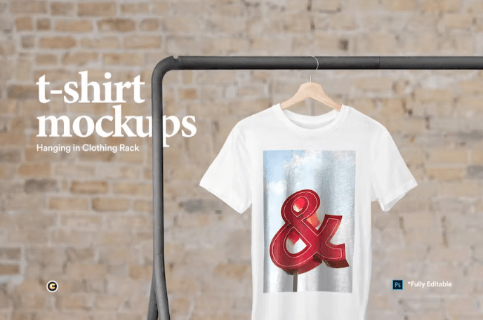 هذا أحد أكثر قوالب نماذج القمصان تنوعًا في هذه القائمة. يأتي مزودًا بقوالب مختلفة تمكنك من إنشاء نماذج بالحجم الطبيعي للقمصان الرجالية والقمصان النسائية المعلقة على رفوف الملابس.