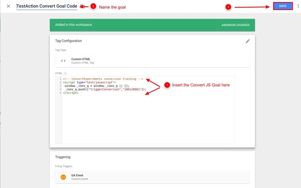 بهذه الطريقة ، كلما حدث إجراء على موقع الويب الخاص بك ، يمكنك تشغيل هدف التحويل وقياس مدى نجاحه.