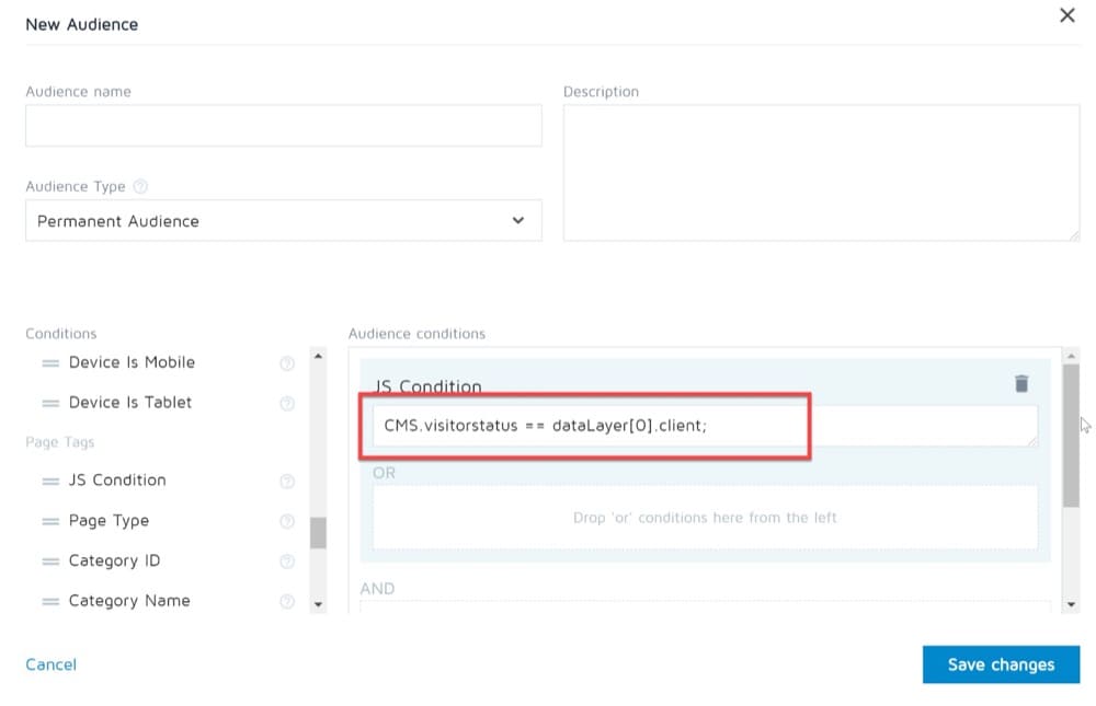 على سبيل المثال ، إذا أعددت متغير طبقة بيانات محددًا حسب حالة الزائر (عميل أو مجهول) ، فيمكنك الاستفادة من ذلك لتشغيل تجربة على شريحة محددة ، مثل العملاء: