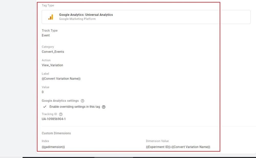 لا تنس تحديد حساب GA الخاص بك في هذه الخطوة. أضف البُعد المخصص الذي تحدثنا عنه أعلاه ، ثم استخدم متغير GA Dimension GTM الذي أنشأناه سابقًا: