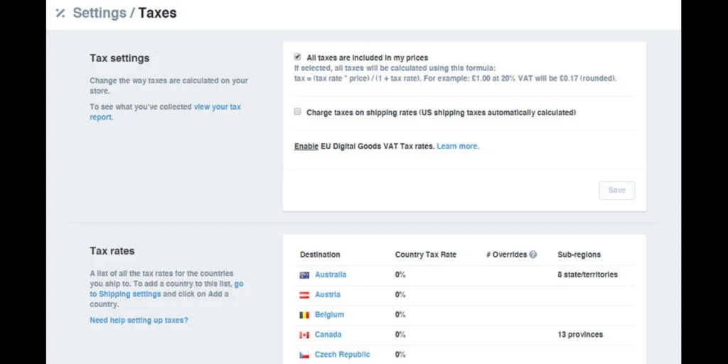 - من مسؤول Shopify ، انتقل إلى الضرائب والرسوم ضمن الإعدادات
