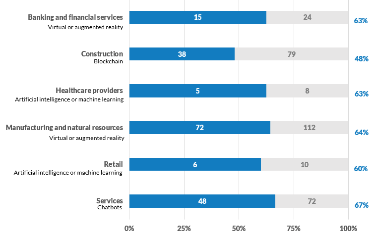 أشارت غالبية (54٪) من المستجيبين البالغ عددهم 699 شخصًا إلى أن تحديد التكنولوجيا المناسبة كان التحدي الأكبر الذي تواجهه مؤسساتهم عند التخطيط للاستثمار في التكنولوجيا الجديدة.