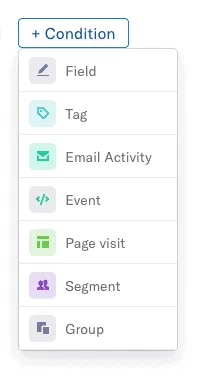 باستخدام شرط المجموعات ، يمكنك استخدام قواعد "و / أو" المتقدمة لبناء شرائح مستهدفة للغاية من الأشخاص. لا توجد حدود لمن يمكنك استهدافه بالمجموعات.