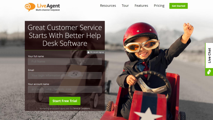 هذا ما بدت عليه الصفحة الرئيسية لـ LiveAgent في عام 2015: