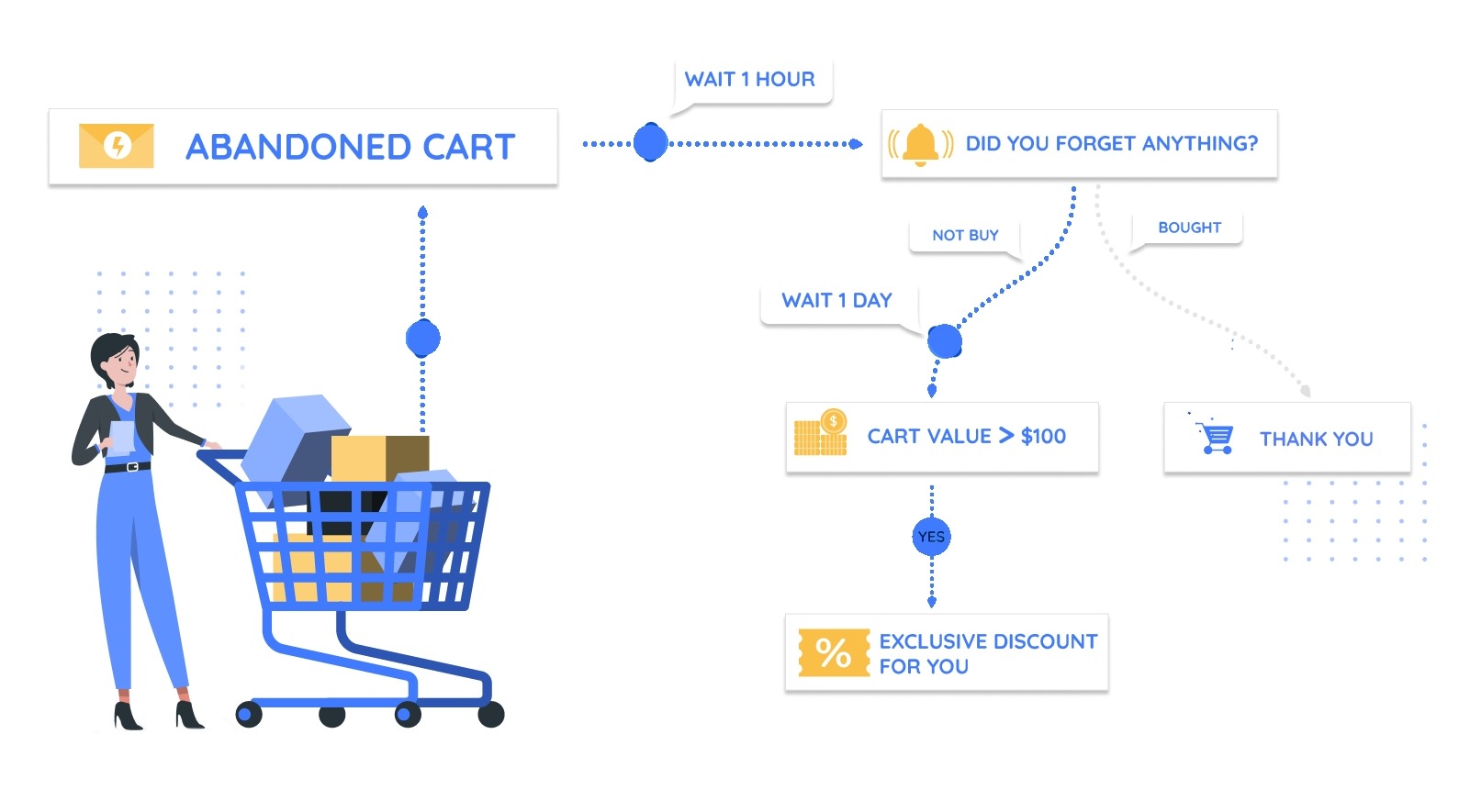 تُستخدم تدفقات العمل المتقدمة في أتمتة البريد الإلكتروني الديناميكي للاستجابة لمجموعة متنوعة من سلوكيات المستخدمين والعملاء . بشكل أساسي ، تقوم بإنشاء حملات بريد إلكتروني للعملاء المحتملين والعملاء في مراحل مختلفة من رحلة المستهلك ، بالإضافة إلى الجماهير ذات الاهتمامات المختلفة ، ثم تنقلهم من قائمة بريد إلكتروني إلى التالية حيث يكملون الإجراءات في مسار المبيعات الخاص بك.