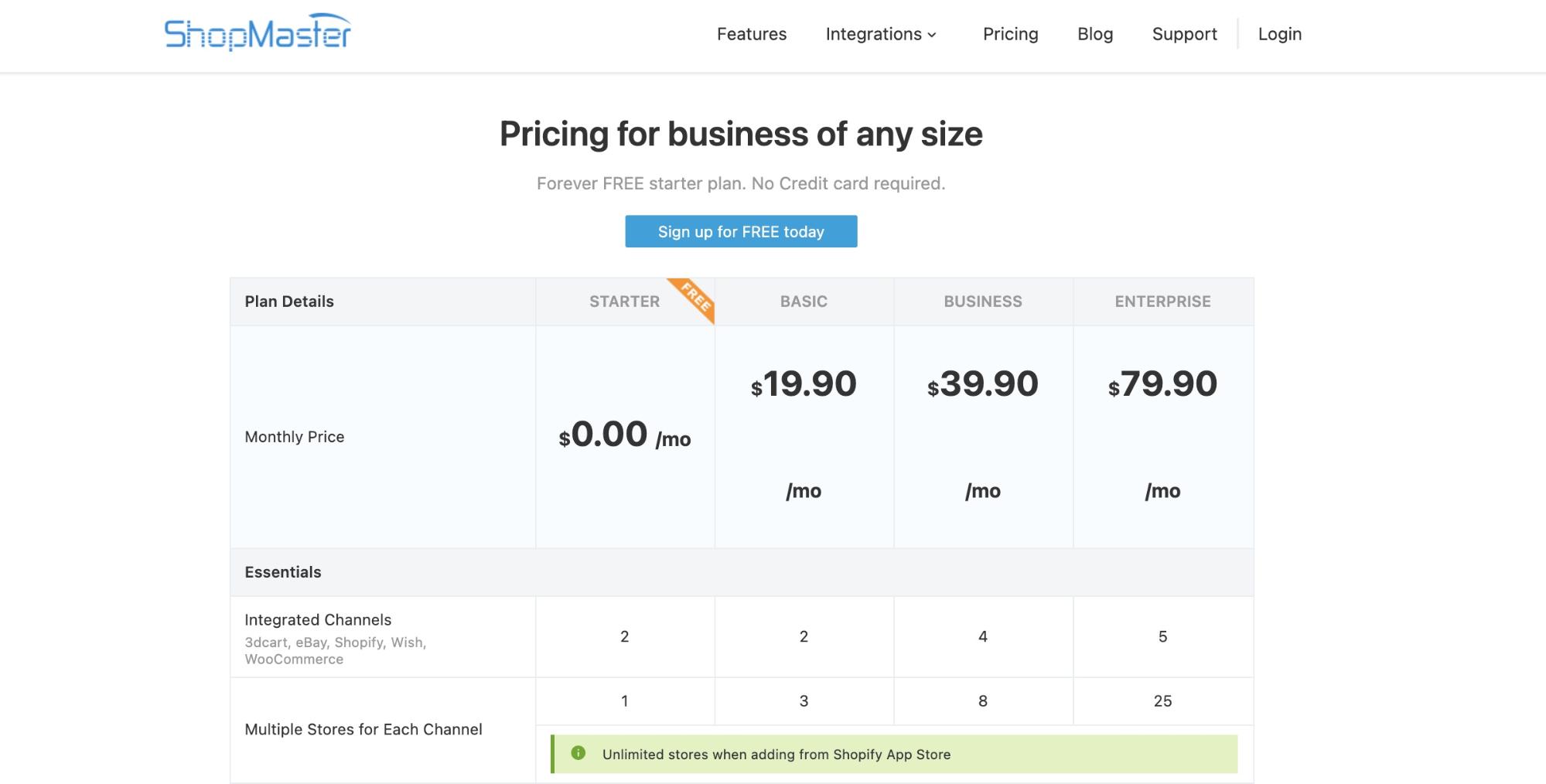 لدى Shopmaster خطة مجانية تتيح لك الوصول إلى جميع ميزاته ، وهناك بعض القيود على كيفية استخدامك لهذه الميزات ، لذلك عندما تبدأ للتو ، فهي طريقة خالية من المخاطر لاختبار التطبيق لمعرفة ما إذا كان ذلك صحيحًا لك.