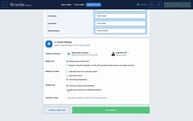 في إطار جهودنا المستمرة لتبسيط سير عملك، يقوم Nimble الآن تلقائيًا بوضع جهات الاتصال في مسارات عمل مخصصة بناءً على نموذج الويب المقدم ، مما يضمن الانتقال السلس من التقاط العملاء المحتملين إلى المتابعة الشخصية.يتعامل نظامنا مع التبديل اليدوي لجهات الاتصال،ويضعها تلقائيًا في سير العمل المناسب لحظة إرسال نموذج الويب .