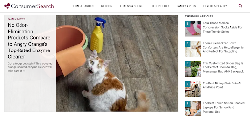 لذلك ، نحن نغلق قائمتنا بموقع ويب آخر قد لا يكون مناسبًا لإجمالي الشركات التابعة للمبتدئين لأنه منتشر للغاية. Consumer Search هو موقع تسويق تابع للتجارة الإلكترونية مشابه لـ Wirecutter ، ليس فقط كمظهر احترافي؟ حسنًا ، عند فحص هذه القطة ستحصل على الفرق في المشاعر