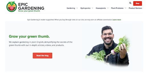 كما ترى في التركيز ، تركز Epic Gardening على مختلف المجالات ولديها موقع ويب جيد التنظيم. لديهم أيضًا ميزة السوق المزدهرة لمنتجاتهم.