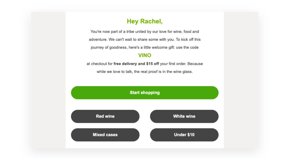 Wir wissen, dass die Personalisierung von E-Mails auf diese Weise nichts Neues ist. Sie wären jedoch überrascht, wie wenige Marken eine so einfache Taktik in ihren Willkommens-E-Mails anwenden.