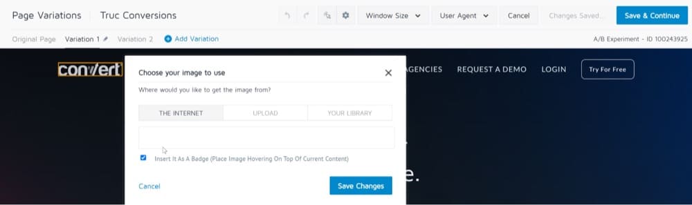 Sie können den Convert Visual Editor verwenden, um eine „A“- und „B“-Variante eines vorgestellten Bildes zu erstellen und sie miteinander zu vergleichen. Das Variantenbild kann dann verwendet werden, um die Konversionsraten zu steigern.