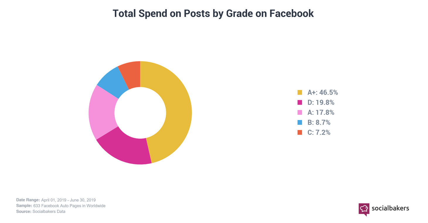 Es ist wichtig, dass Automobilmarken ihr Budget nur für qualitativ hochwertige Inhalte ausgeben, sonst werfen sie schlechtem Geld gutes Geld hinterher. Leider geben 27 % der Automobilmarken immer noch Geld für Inhalte von geringer Qualität aus (Inhalte mit C- und D-Bewertung), die kein Engagement bringen.