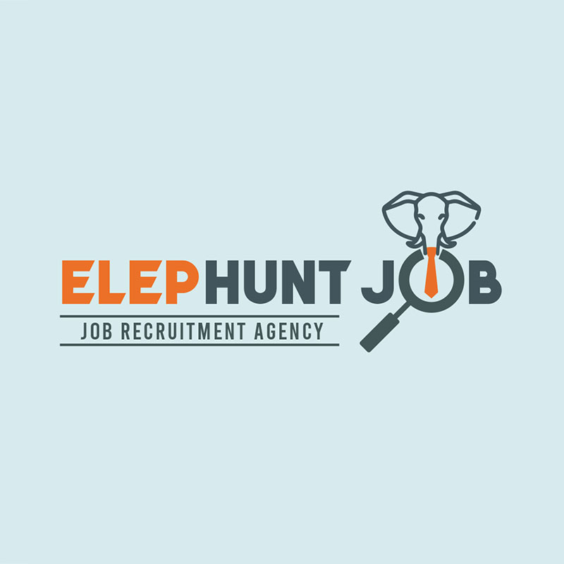 Die Kombination der Wörter Elefant und Jagd in dieser Personalvermittlungsagentur ist eine clevere Möglichkeit, diese sanften Riesen in ihren Markennamen zu integrieren. Das Logo der Elephunt Job Recruitment Agency verwendet eine Illustration eines Elefanten, der eine Krawatte trägt. Der Buchstabe O im Wort Job wurde in eine Lupe verwandelt, um die Suche zu symbolisieren.