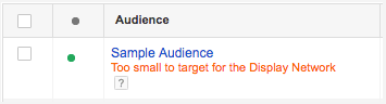 Das Erstellen von Zielgruppen eignet sich hervorragend, um bestimmte Gruppen von Kunden und Leads zu erreichen. Bevor Anzeigen jedoch geschaltet werden können, muss die Zielgruppe eine Mindestanzahl erreichen (mindestens 100 aktive Nutzer innerhalb der letzten 30 Tage für Anzeigen im Google Display-Netzwerk und mindestens 1.000 aktive Nutzer für Anzeigen in der Google-Suche). Wenn es nicht genug Zeit hatte, um die Anforderungen zu erfüllen, ist Ihr Publikum zu klein und wird nicht angezeigt.