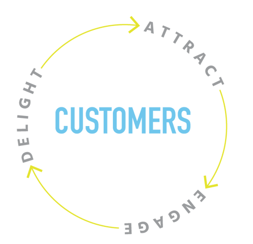 Und hier sehen Sie einige der Komponenten des Inbound-Marketing-Schwungrads ( Attract , E ngage und Delight ) in Aktion.