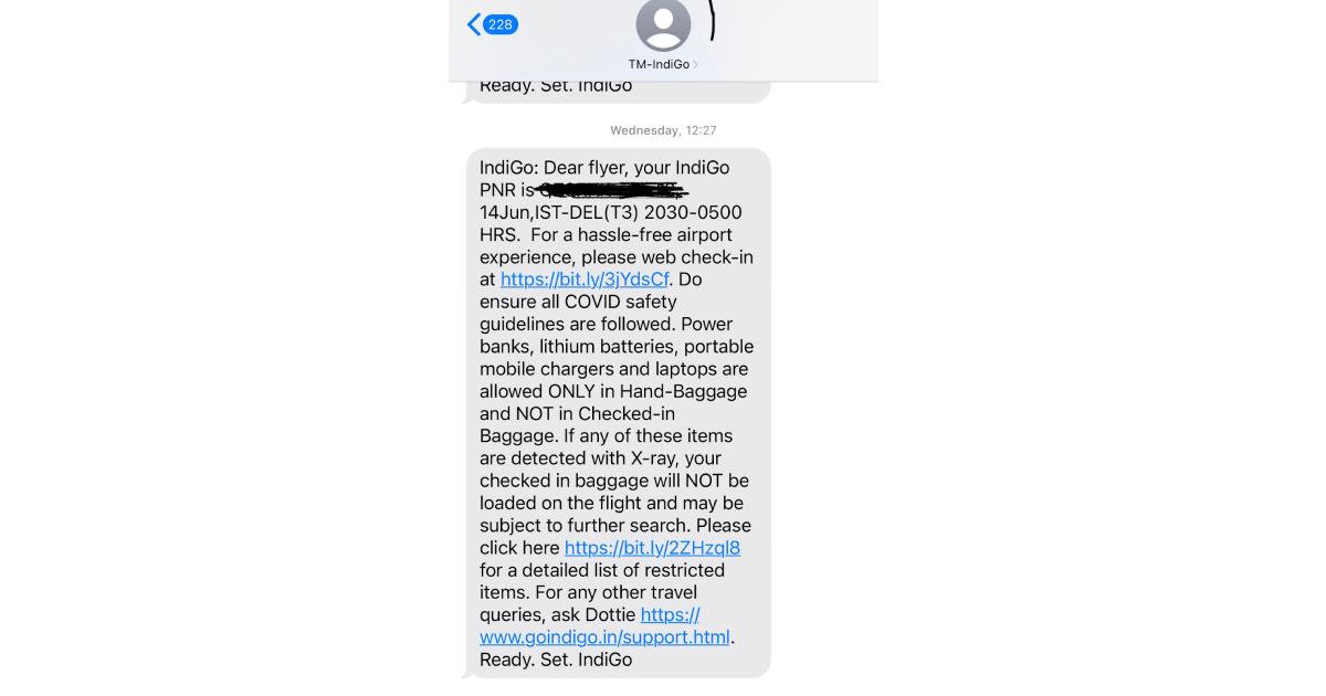 Werfen Sie einen Blick auf die rechtzeitige SMS-Benachrichtigung von IndiGo, die einen Passagier auffordert, den Web-Check-in abzuschließen, um ein reibungsloses Reiseerlebnis zu gewährleisten.