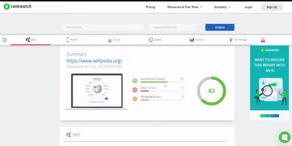 Dazu können Sie den Website Analyzer verwenden – er kann Ihre Website verfolgen und einen detaillierten Bericht mit Möglichkeiten zur Verbesserung Ihrer SEO erstellen.