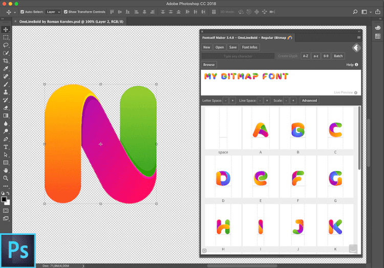 Fontself ist ein Photoshop-Plugin, mit dem Sie Ihre eigenen Schriftarten erstellen können. Es kommt auch in einer Adobe Illustrator-Version.