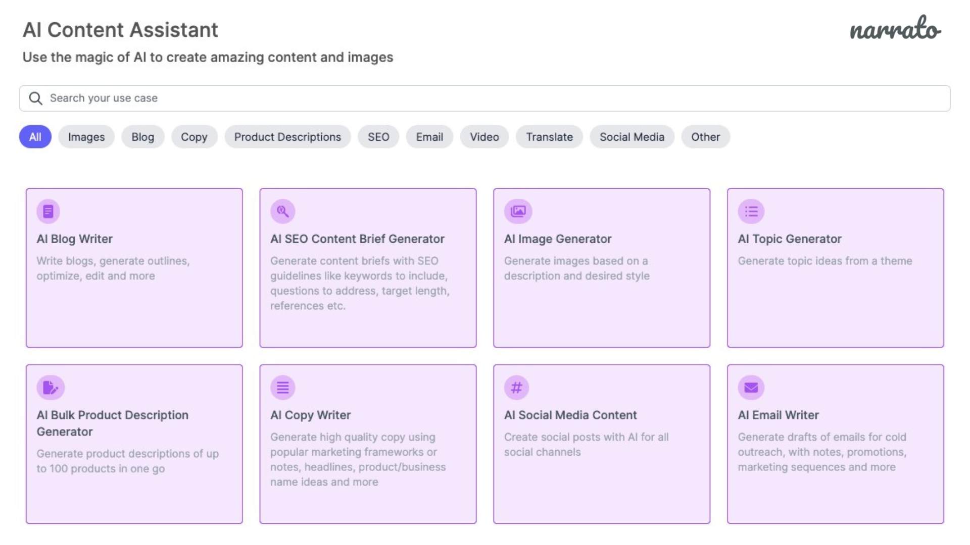 Der KI-Writer von Narrato verfügt außerdem über mehrere Anwendungsfälle, die zur Verbesserung der Lesbarkeit beitragen könnten –
