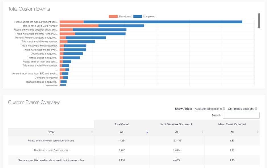 Im obigen hypothetischen Beispiel stellt das Kreditkartenfeld die letzte Interaktion dar, die der Benutzer mit dem Formular hatte, bevor er es verließ. Sobald sich Muster abzeichnen, haben Sie eine bessere Vorstellung davon, welche Felder am problematischsten sein könnten.