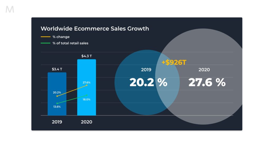 En realidad, el espacio comercial experimentó un gran crecimiento. El comercio electrónico explotó mientras el resto del mundo cerró. El comercio electrónico global creció casi un billón de dólares en 12 meses. Cada cosa negativa que temíamos en realidad sucedió al revés.