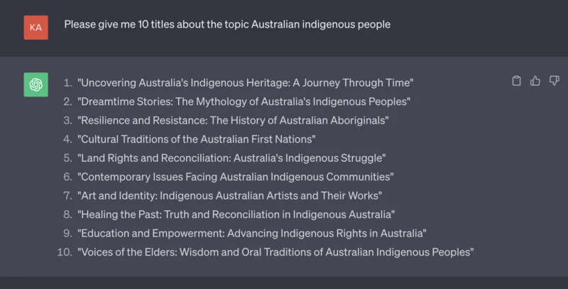 Además de generar ideas, puedes dejar que ChatGPT te ayude a generar títulos. El escritor de IA crea títulos buenos y atractivos que se ajustan al tema previsto. Puede elegir el mejor título, revisarlo o incluso utilizar las sugerencias de títulos como inspiración.