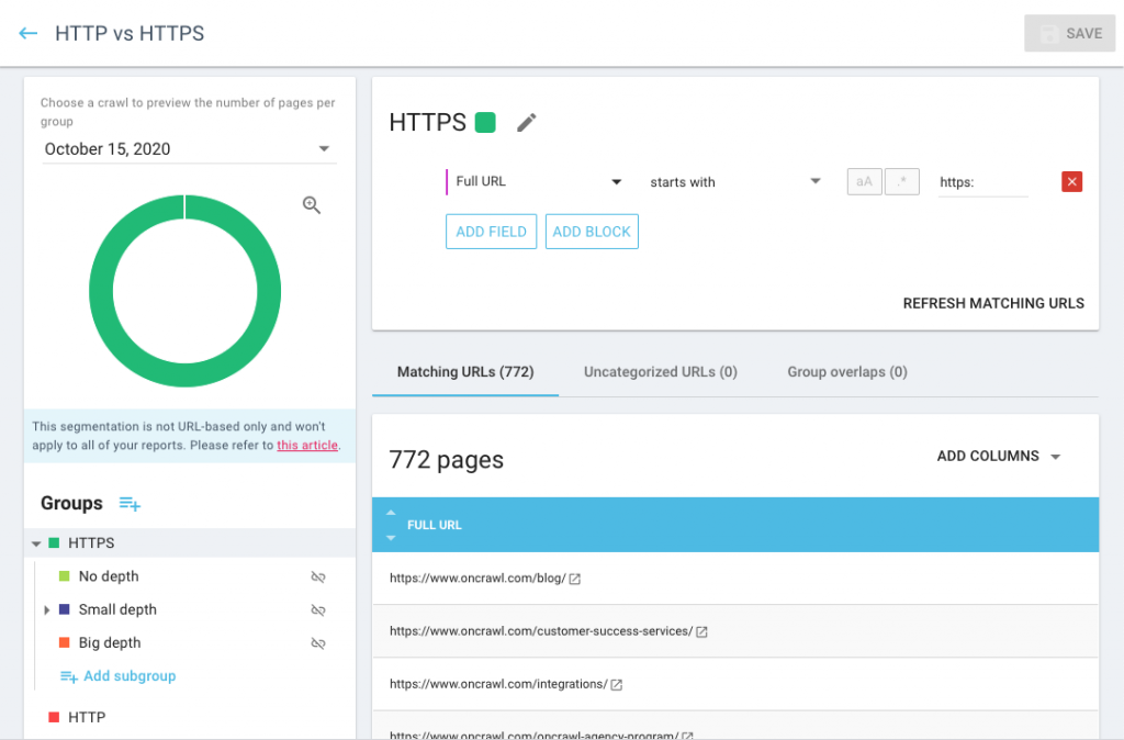 Una segmentación es simplemente cómo agrupa y categoriza las páginas de su sitio web . Dependiendo de lo que intente auditar, es posible que incluso desee múltiples segmentaciones entre las que puede cambiar en cualquier momento.