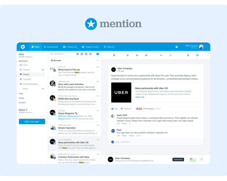 Finalmente, la función Escuchar de Mention es esencialmente una herramienta de análisis que lo ayuda a comparar tendencias y filtrar por conversaciones clave. De esta manera, puede identificar rápidamente las tendencias sociales más populares entre su público objetivo y optimizar mejor las futuras campañas de marketing.