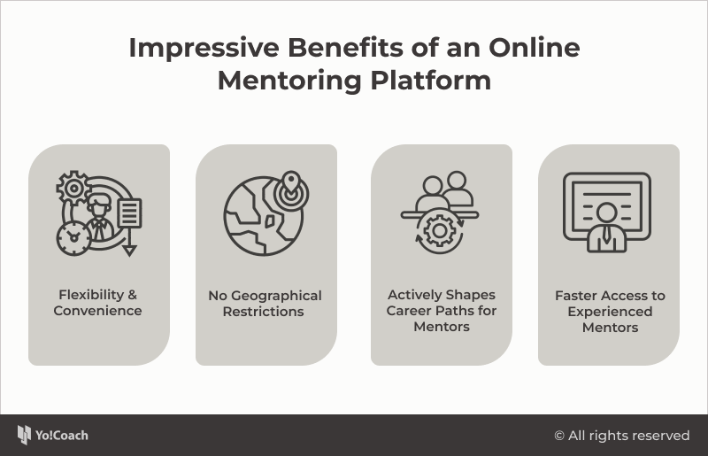 Las plataformas de tutoría en línea han hecho que la tutoría sea más accesible, conveniente e inclusiva para las personas que buscan desarrollo personal y crecimiento profesional. También brindan acceso a mentores de diversos orígenes e industrias. En esta sección, cubrimos los beneficios de una plataforma de tutoría en línea.