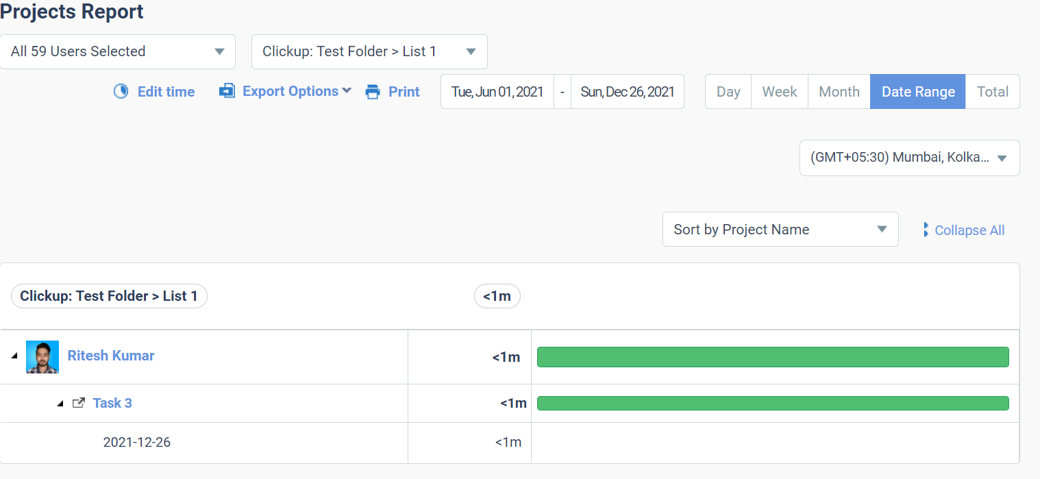 Cuando integra Time Doctor y ClickUp, puede realizar un seguimiento del tiempo total dedicado a una tarea, proyecto o campaña en particular. Para ello, se utilizan los informes de las aplicaciones web de Time Doctor. Puede encontrar muchas opciones en la lista desplegable de la función Informes de Time Doctors, como se muestra en la imagen a continuación.
