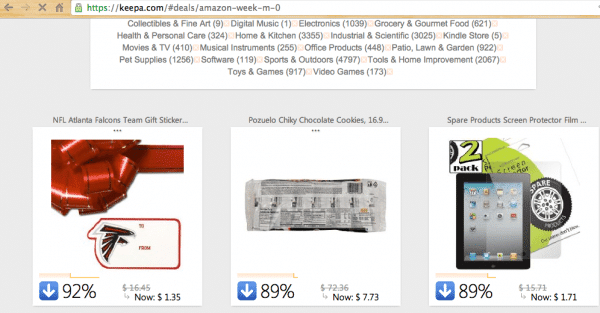 Primer paso: vaya a Keepa para ver sus reducciones de precios semanales y diarias.