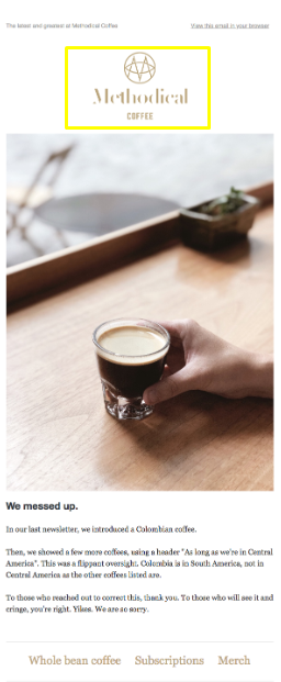 Utilice una imagen que haga referencia a la línea de trabajo de la empresa. Por ejemplo, tienes una tienda de café y tus suscriptores obtienen un dato interesante sobre el café una vez a la semana. En uno de los correos, te equivocaste con la información. En el boletín de disculpas, puede usar una foto de una taza de café o algo así. Recuerda el primer consejo.