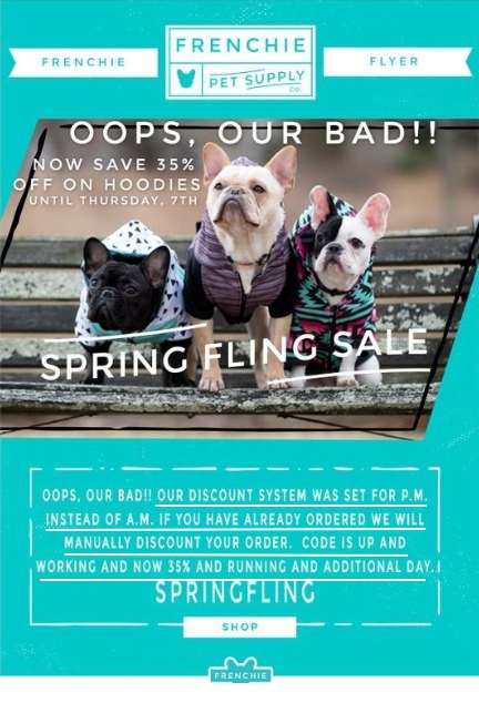En este boletín de disculpas, la marca no utiliza imágenes de Google, utiliza la foto que se tomó especialmente para la empresa. No uses tantos gatos, perros y otros animales dulces . Pides perdón, no limosna. Puede ser adecuado si vende cosas para animales o cuando se usa para no provocar lástima.
