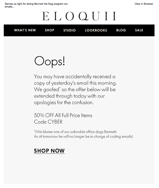 Vaya, los correos electrónicos son las cartas que se disculpan por equivocarse. Si una marca comete un error, debe enviar un correo electrónico de disculpa a los clientes.