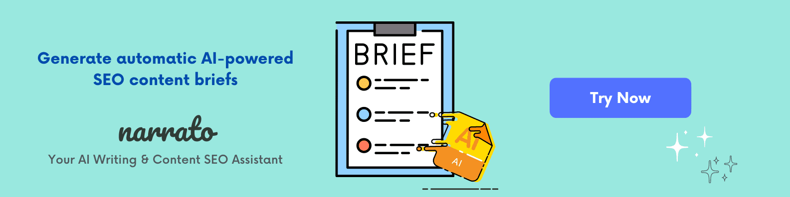 Narrato ofrece un generador de resúmenes de contenido de SEO que puede brindarle un resumen completo de SEO en minutos. La herramienta requiere que simplemente ingrese el título o tema de su contenido. En cuestión de minutos genera un resumen completo con sugerencias de palabras clave, preguntas para responder, enlaces de la competencia, longitud ideal del contenido y más. Los recuentos de palabras clave se actualizan automáticamente a medida que los usa en su contenido. El resumen de SEO también califica su contenido en función de qué tan bien su contenido ha cumplido con estos requisitos de SEO.