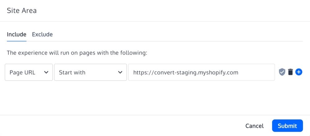 Esto sucede porque si está tratando de excluir a los visitantes que se incluyeron en una experiencia configurada con menos del 100% de tráfico, aún se escribe una cookie si el visitante cumple con las condiciones de Área del sitio y Audiencia, pero debido a la distribución del tráfico, el visitante no fue incluido en esa experiencia.