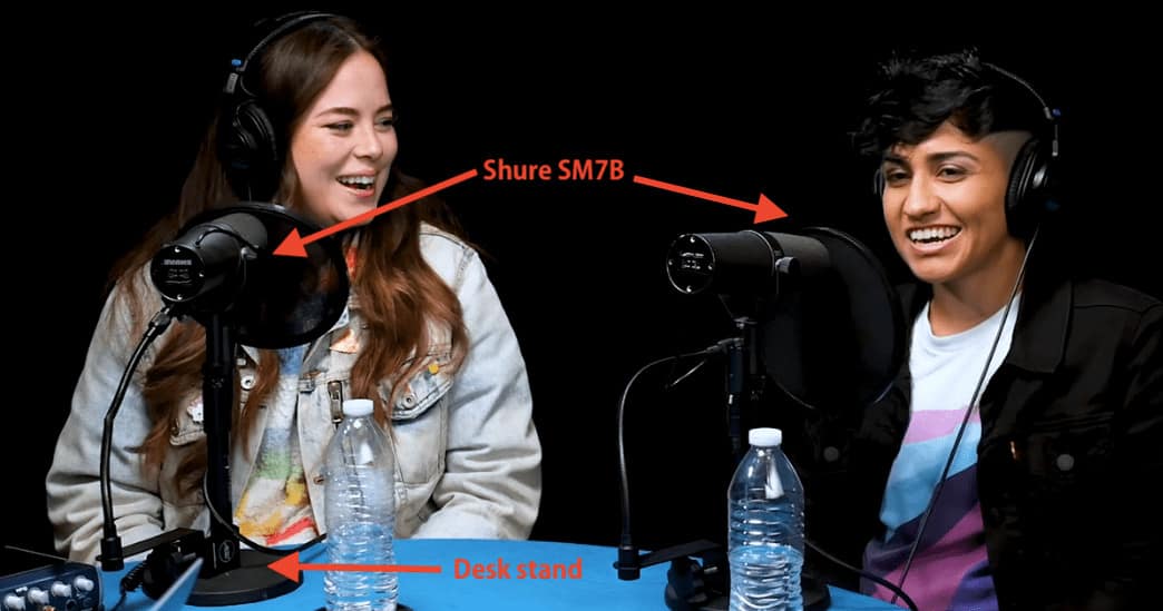 También puede usar el Shure SM7B montado en un soporte de escritorio, como el popular soporte de micrófono de escritorio On Stage. Los soportes de escritorio son generalmente más baratos que los brazos articulados y los soportes de piso y funcionan bien si tiene espacio en el escritorio frente a usted cuando graba.