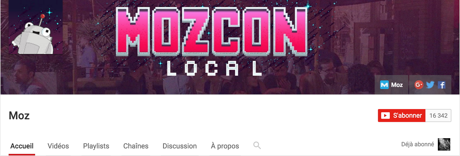Por supuesto, su canal de Youtube debe tener su marca con su nombre, ícono HD y banner, y su URL mnemónica debe incluir su nombre. El canal Moz ha integrado todos esos elementos para ofrecer un perfil de Youtube bien optimizado.