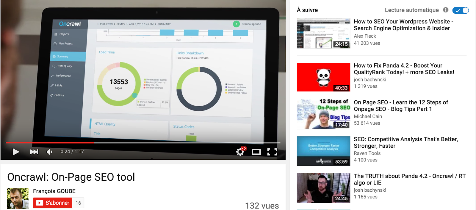 Los títulos, descripciones y etiquetas de los videos son los principales factores de clasificación. Al igual que optimizaría una página web normal, las palabras clave deben insertarse en esos tres elementos. Coloque sus palabras clave al comienzo de los títulos de sus videos y agregue el enlace de su sitio web en la descripción del video.