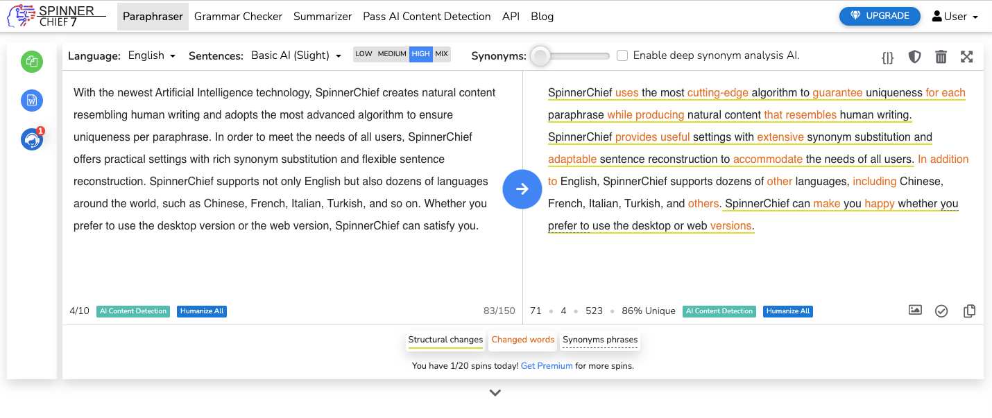 Paraphraseur de l'IA SpinnerChief