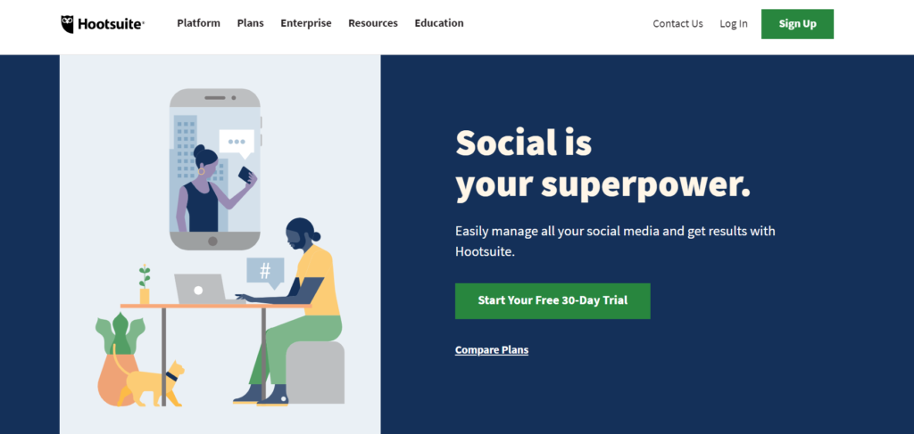 Hootsuite est l'un des meilleurs outils de gestion des médias sociaux sur le marché ces jours-ci. Il vous permet de gérer facilement tous vos profils sociaux à partir d'une seule plateforme et vous donne des statistiques et des rapports pertinents. Avec des solutions typiques, comme la planification automatique, les calendriers de médias sociaux, etc., Hootsuite peut certainement faciliter la présence sur les médias sociaux pour vous et les marques dont vous faites la promotion.